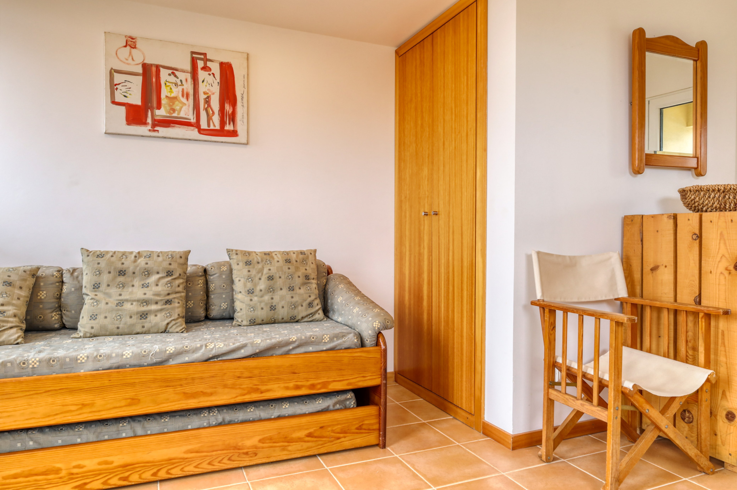 El alojamiento tiene un área interior de aproximadamente 20 m2, con un sofá cama que puede acomodar a dos personas. Los dos colchones del sofá cama miden aproximadamente 0,8 x 1,75 m, recomendado para jóvenes y personas de pequeña estatura.