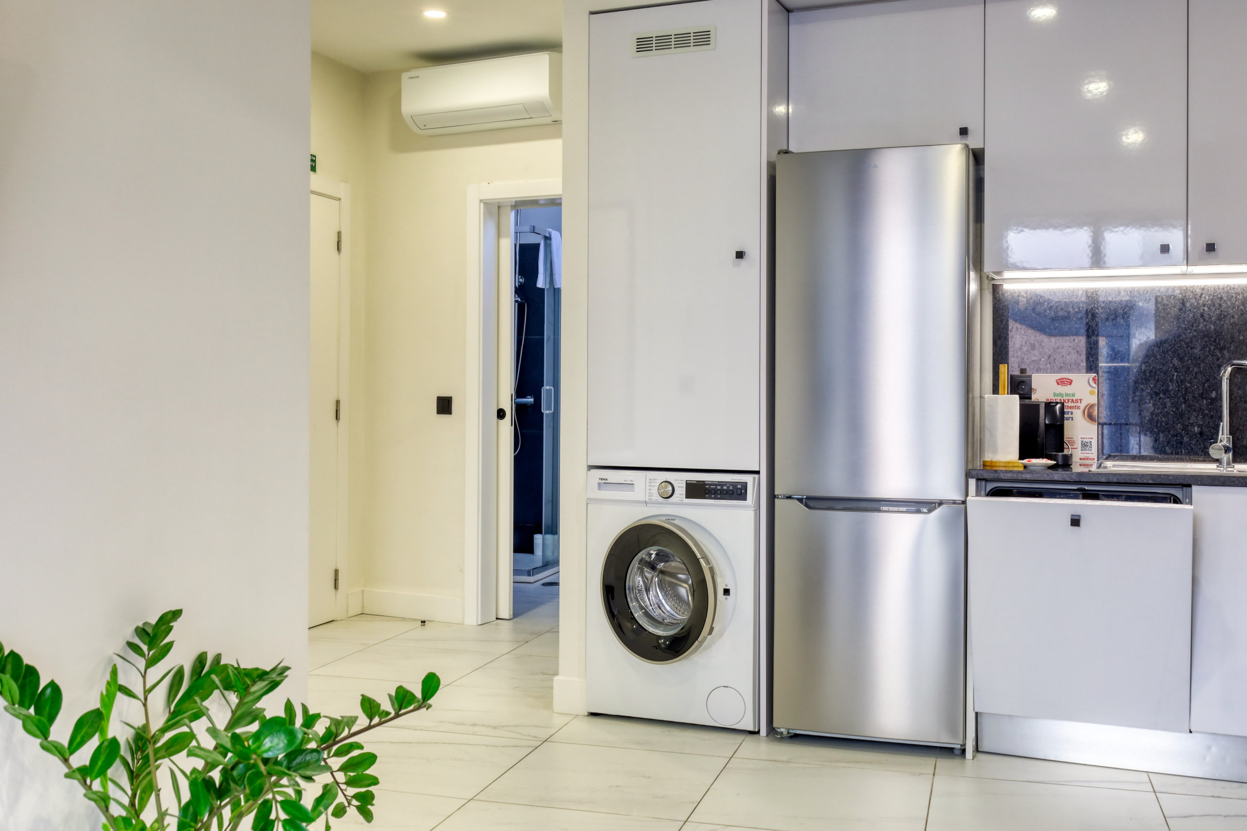 L'appartement est équipé de la climatisation, d'un réfrigérateur, d'un lave-linge séchant, d'une cuisinière, d'un four, d'un four micro-ondes, d'une cafetière et d'autres ustensiles, ainsi que de linge de lit, de serviettes, d'une connexion Wi-Fi, d'une télévision avec chaînes internationales et d'autres équipements pour offrir un séjour agréable et détendu.