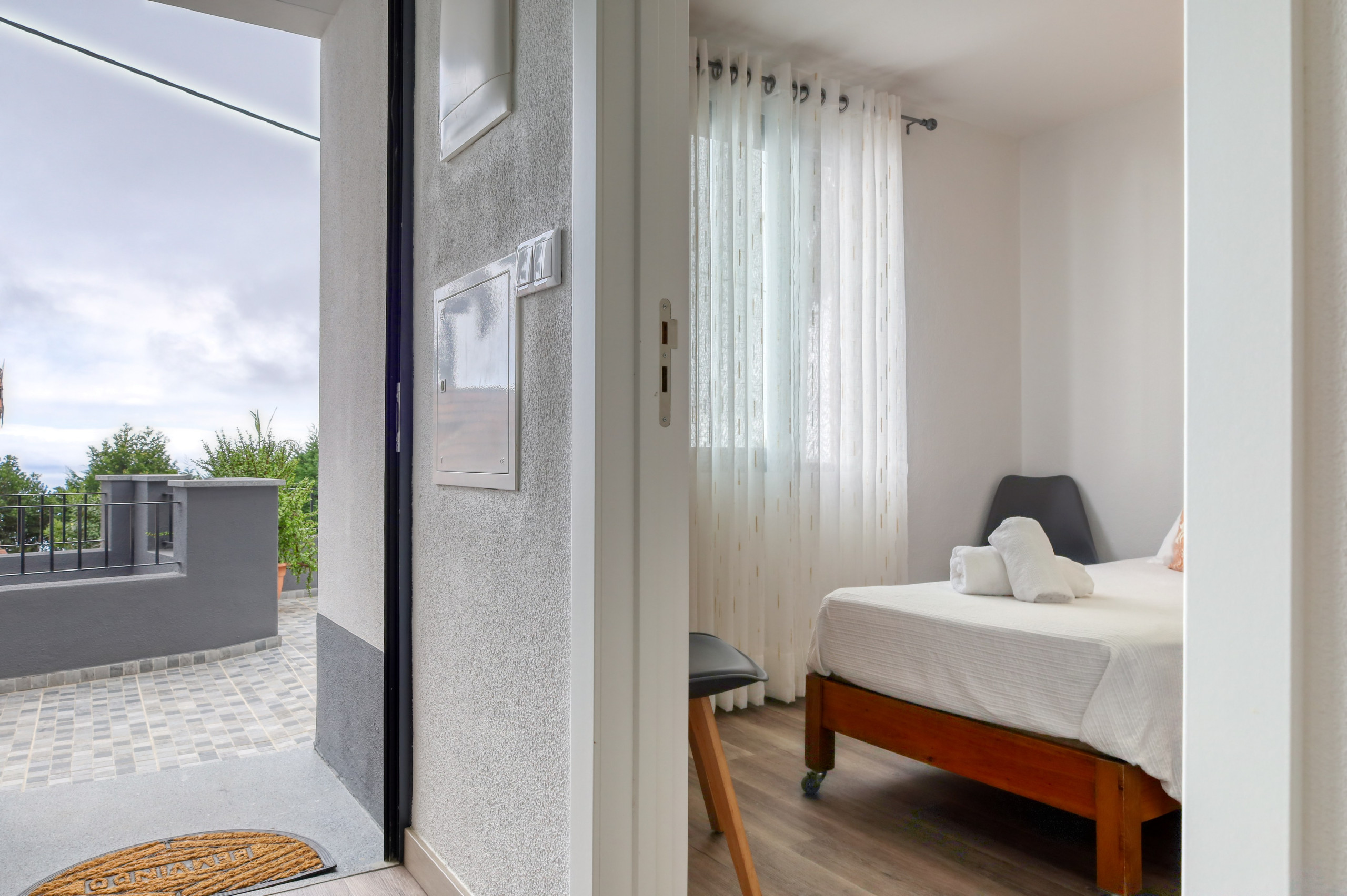 À l'extérieur, il y a un patio et une terrasse sur le toit avec une vue imprenable sur la ville et la mer.