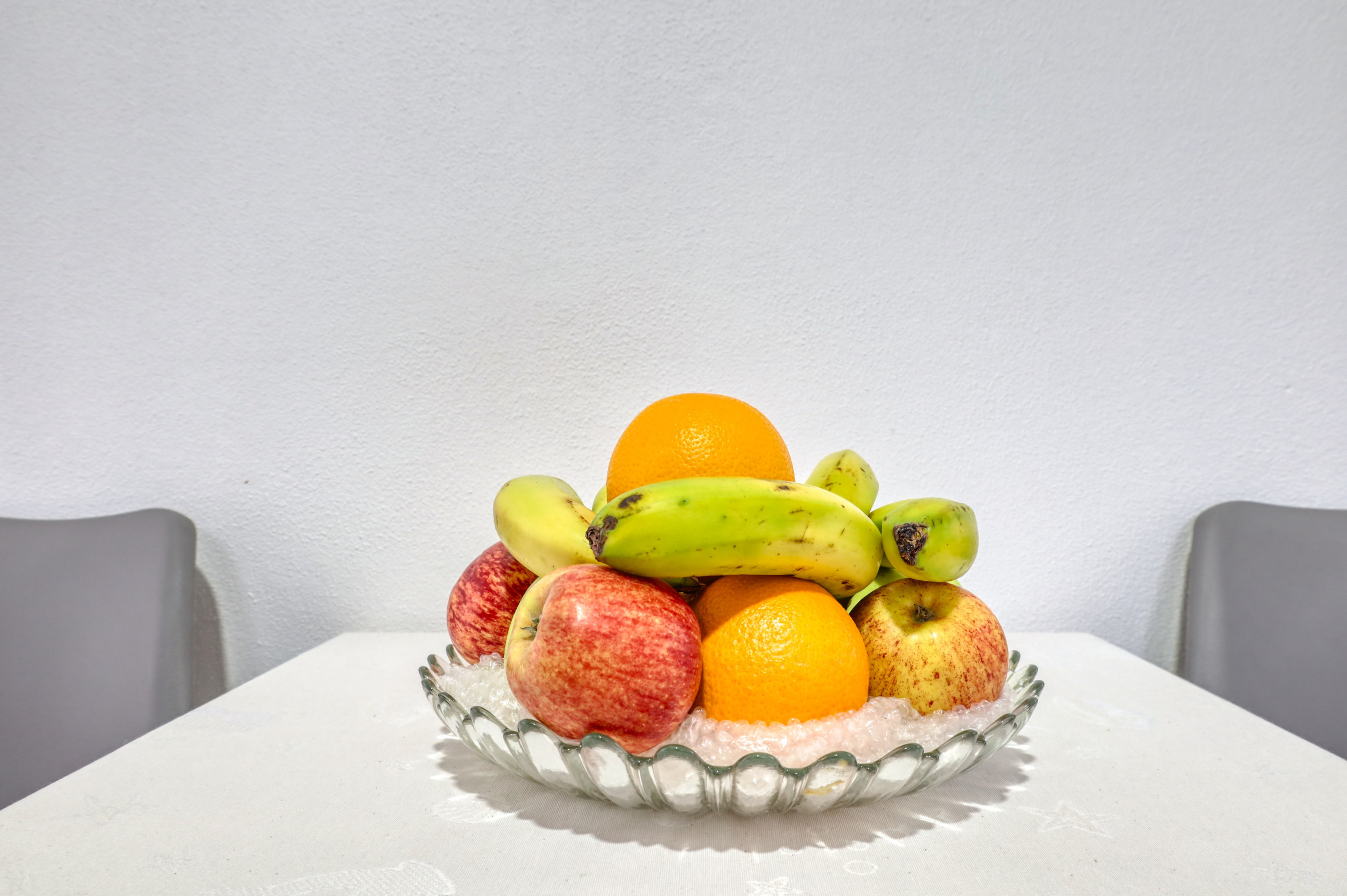 La maison fait 84 m2 et se compose d'une chambre avec un lit double, d'une chambre avec deux lits simples, d'un salon avec une table à manger, d'une cuisine, d'une salle de bain, d'un patio avec barbecue et d'une terrasse sur le toit avec vue sur la bananeraie devant la maison, la mer et la montagne.