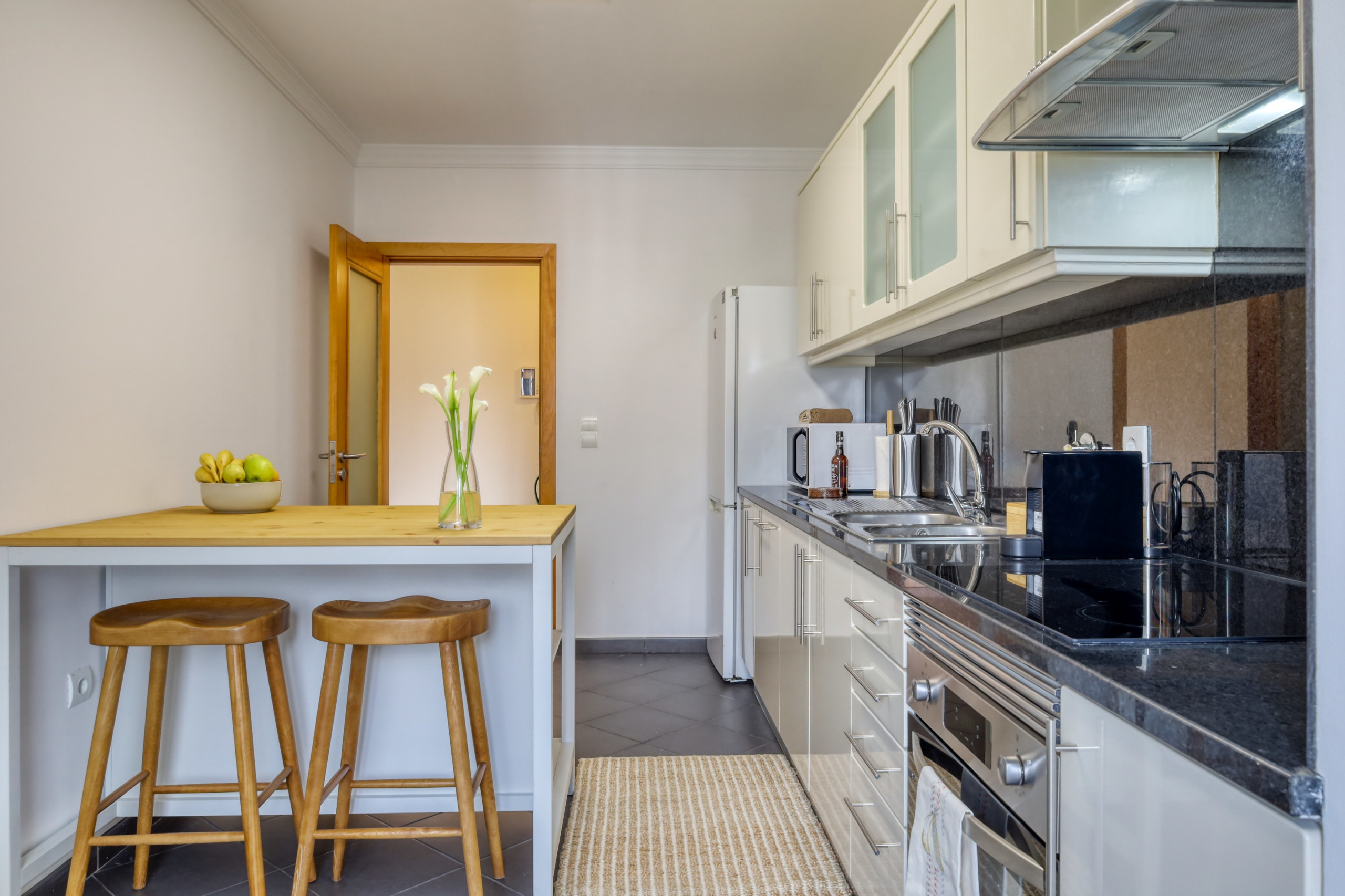 O apartamento está equipado com frigorífico, máquina de lavar roupa, fogão, forno, microondas, máquina de café e outros utensílios, bem como roupa de cama, toalhas, Wi-Fi (1 Gbps), TV com canais internacionais e outras comodidades para proporcionar uma estadia agradável e descontraída.