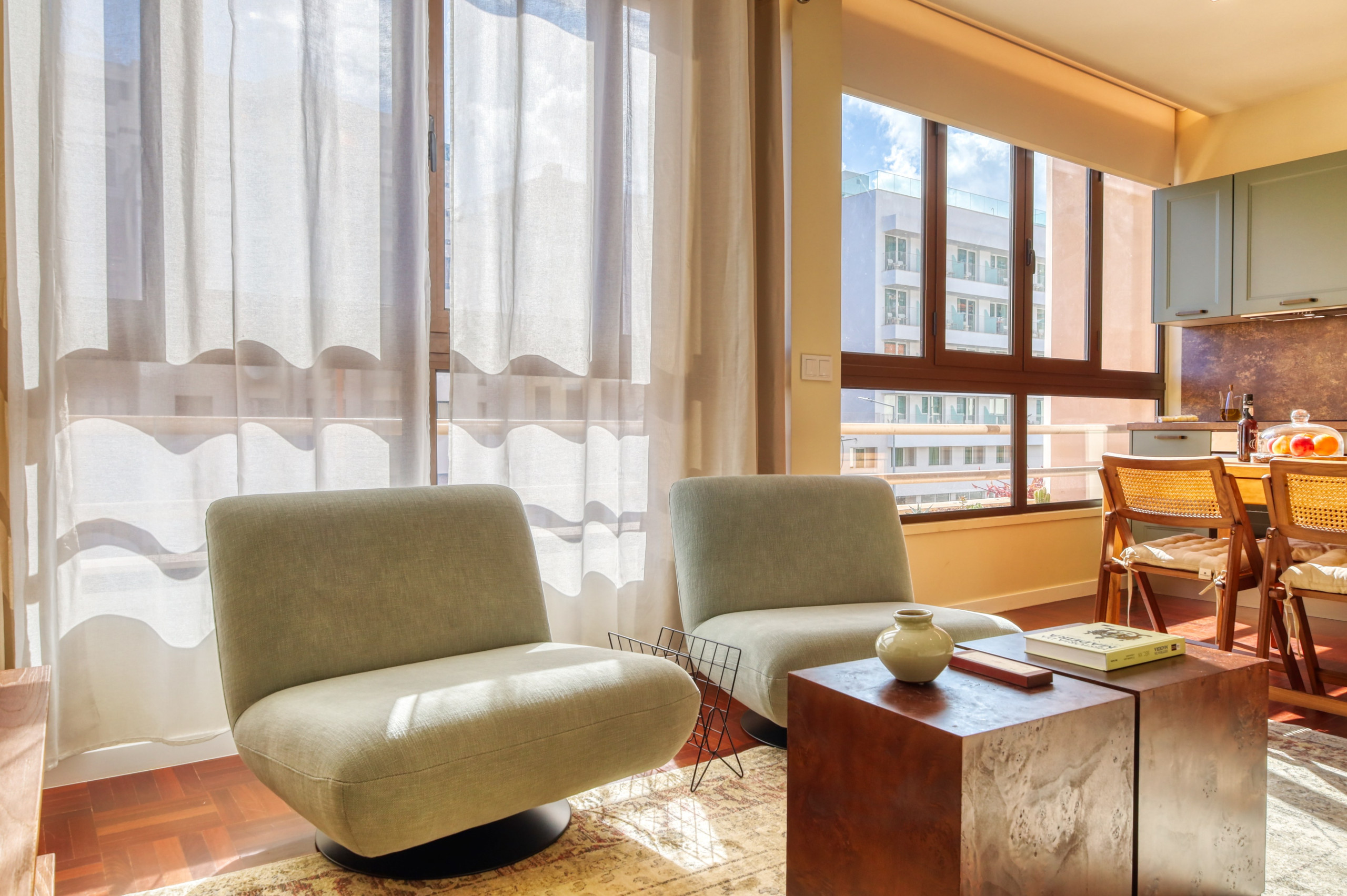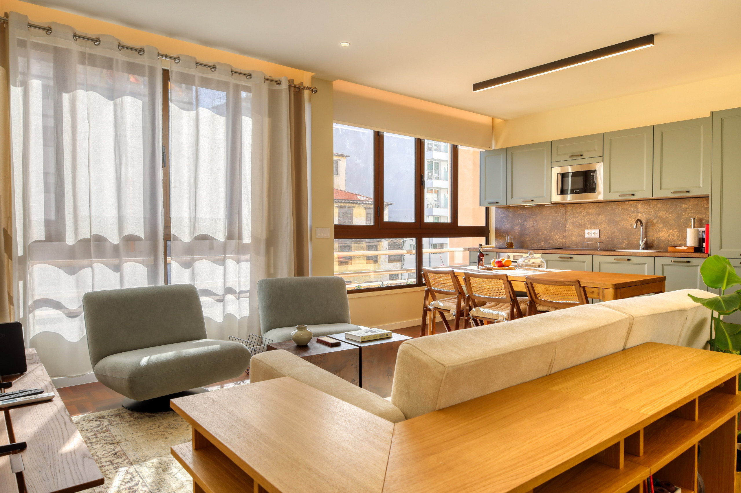 It is equipped with a washing machine and tumble dryer, dishwasher, refrigerator and freezer, ceramic hob, oven, microwave and other kitchen utensils, as well as bed linen, towels, Wi-Fi (1 Gbps) and television with international channels, amongst other amenities to provide a pleasant and relaxed stay.